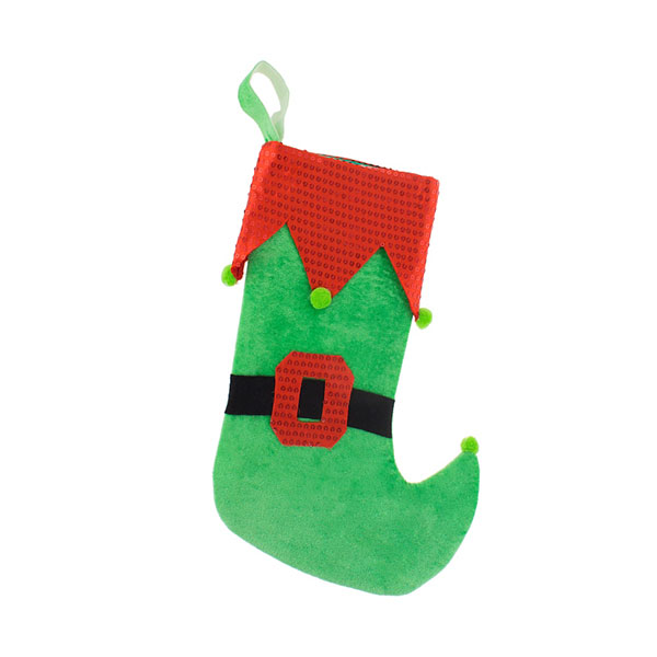 Mięciutka skarpeta elfa w świątecznych kolorach – zielonym oraz czerwonym.
