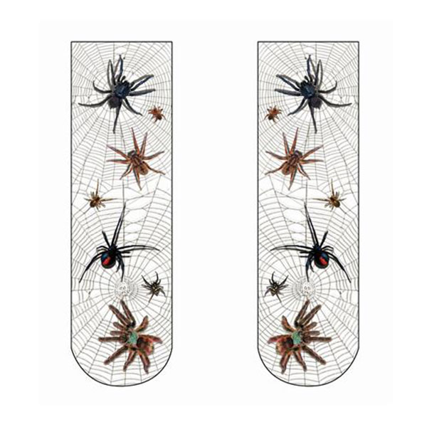Śmieszne skarpetki dla mężczyzny i kobiety w pająki doskonale uzupełnią Halloweenowe przebranie.