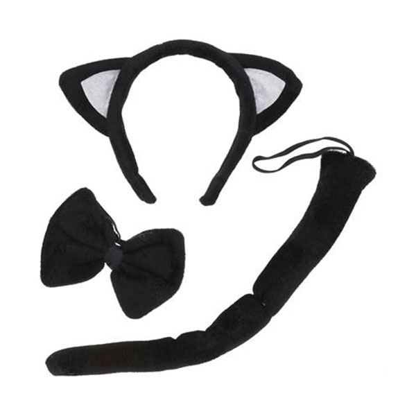 Strój Kotek z Uszami, Ogonkiem i Kokardką – zestaw