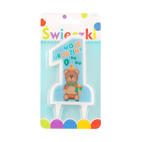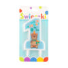 Świeczka w kształcie “1” w kolorze niebieskim z misiem .