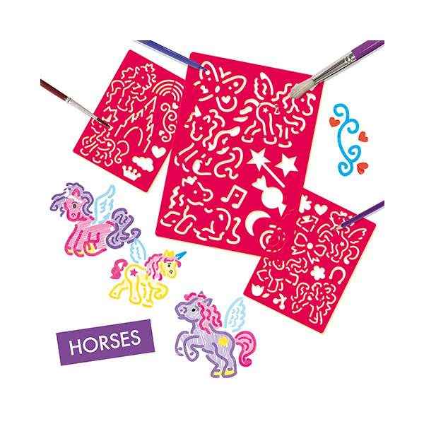 Zestaw szablonów Koniki, Kucyki – to inwestycja w wiele zabaw, która będzie służyła przez lata i podaruje mnóstwo zabawy, uśmiechu i wspaniałych chwil pełnych radości!