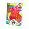 Kompletny zestaw 6 plansz, wypełnionych bajkowymi szablonami przedstawiającymi: pieska, roślinki, słonko, konika, traktor, krówkę, koguta