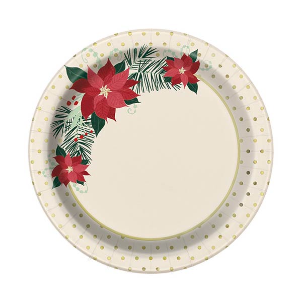 Talerz Papierowy Boże Narodzenie są ozdobione pięknym motywem Poinsecja – Kwiat zwany kwiatem Bożego Narodzenia.