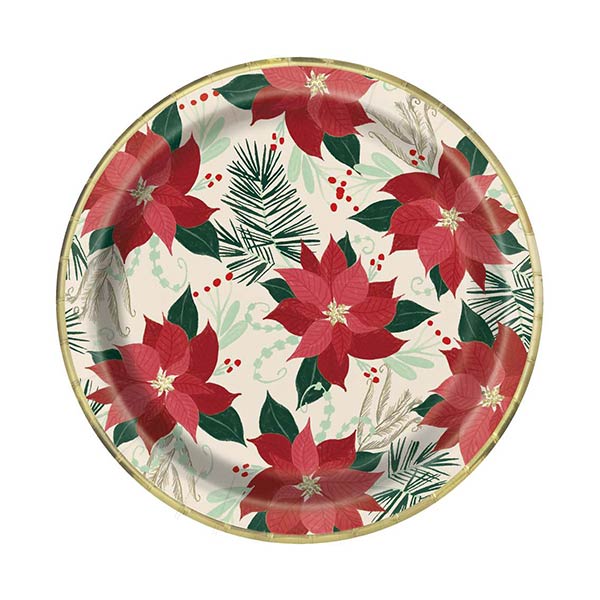 Talerz Papierowy Boże Narodzenie są ozdobione pięknym motywem Poinsecja – Kwiat zwany kwiatem Bożego Narodzenia.