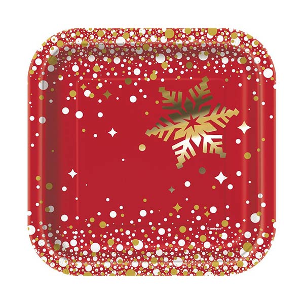 Talerzyki Papierowe Świąteczne – kwadratowe z napisem “Merry Christmas” są przepiękne i sprawdzą się podczas każdego świątecznego spotkania przy wspólnym stole.