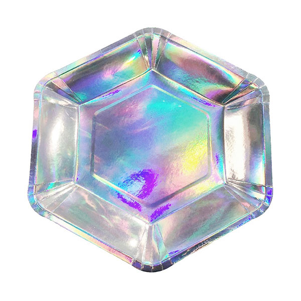 Talerze Papierowe Sześciokątne – opalizujące – 6 sztuk – 23 cm