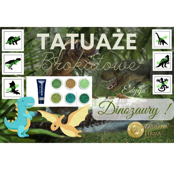 Tatuaże Brokatowe – Zestaw do Tatuaży Brokatowych EDYCJA DINOZAURY