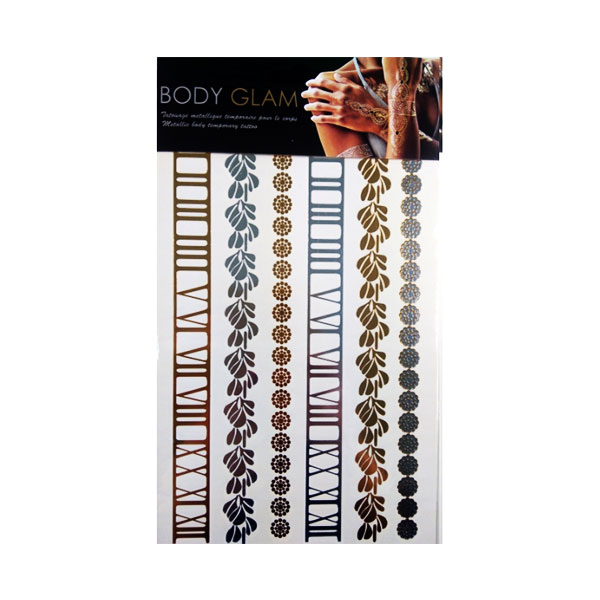 Zestaw 6 metalicznych tatuaży zmywalnych.