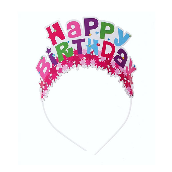 Tiara zdobiona różowymi gwiazdkami i napisem ‘Happy Birthday’.