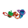 Zabawka zawiera grzechotkę w środku oraz ozdobną wstążkę.