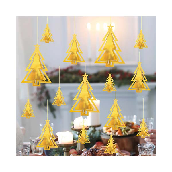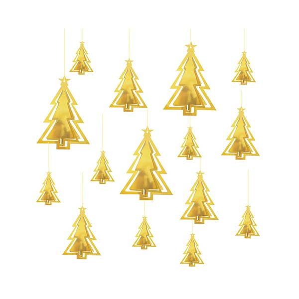 Dekoracja wisząca 3D złote choinki 15szt | Boże Narodzenie |