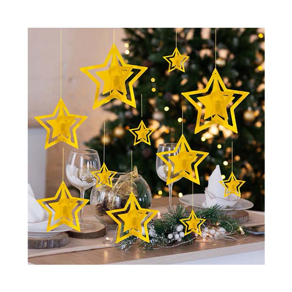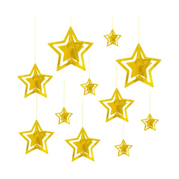 Złote gwiazdki 3D – Dekoracja Wisząca – 11 sztuk