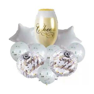 W zestawie znajduje się 6 sztuk Balonów – jeden w kształcie butelki oraz 5 balonów dekoracyjnych w idealnie dobranej kolorystyce.