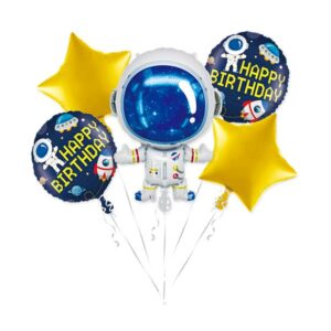 Zestaw 5 Balonów Urodzinowych Foliowych z napisem Happy Birthday z Astronautą