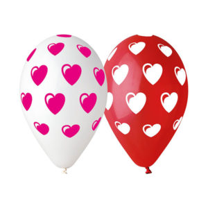 Balony z nadrukiem – Serduszka – czerwone i białe – 12″ – 5 sztuk