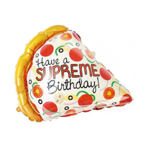 Balon Pizza – Balon w Kształcie Pizzy z napisem “Have a Supreme Birthday” (Doskonałych Urodzin) to idealny balon na Imprezę dla wielbicieli pizzy 🙂