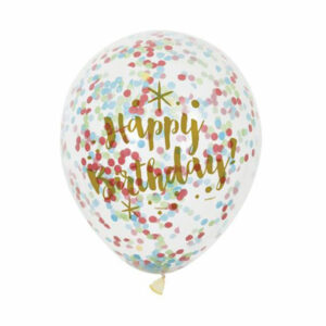 Balony Urodzinowe z konfetti Happy Birthday 12″ / 6 sztuk
