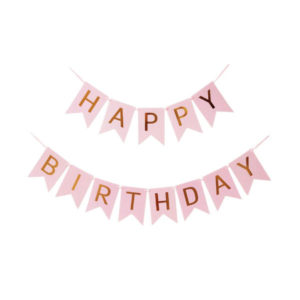 Dekoracje, Dekoracje Sali, Ogrodu i Stołu, Dekoracje Wiszące, Girlandy, ProduktyGirlanda – Chorągiewki z Napisem Happy Birthday – różowy – wysokość 20 cm