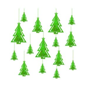 A, Boże Narodzenie, Dodatki Świąteczne, Grudzień, Imprezy Tematyczne, Mikołaj, Gwiazdor, Mikołajki – 6 grudnia, Uroczystości i Imprezy, Wigilia Bożego Narodzenia – 24 grudniaZielone Choinki 3D – Dekoracja Wisząca – 15 sztuk